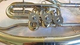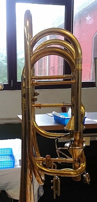 Heute muss mal ein Vorher-/Nachher-Foto sein. Spada J-Horn - Überholung mit Bürsten und Vergolden.