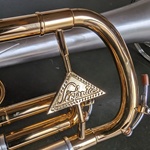 Überholung Amrein, schöne C-Trompete mit dem unverkennbaren Lübecker Holstentor-Emblem.
