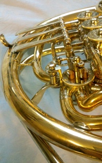Kruspe - kompensiertes Doppelhorn. Entlackt/Becher innen Mattlack.