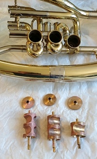 In den letzten zwei Monaten habe ich drei Bach LR25 Mundrohre wegen Zinkfraß ausgetauscht, diese 43B bekam anschließend eine schöne Vergoldung.